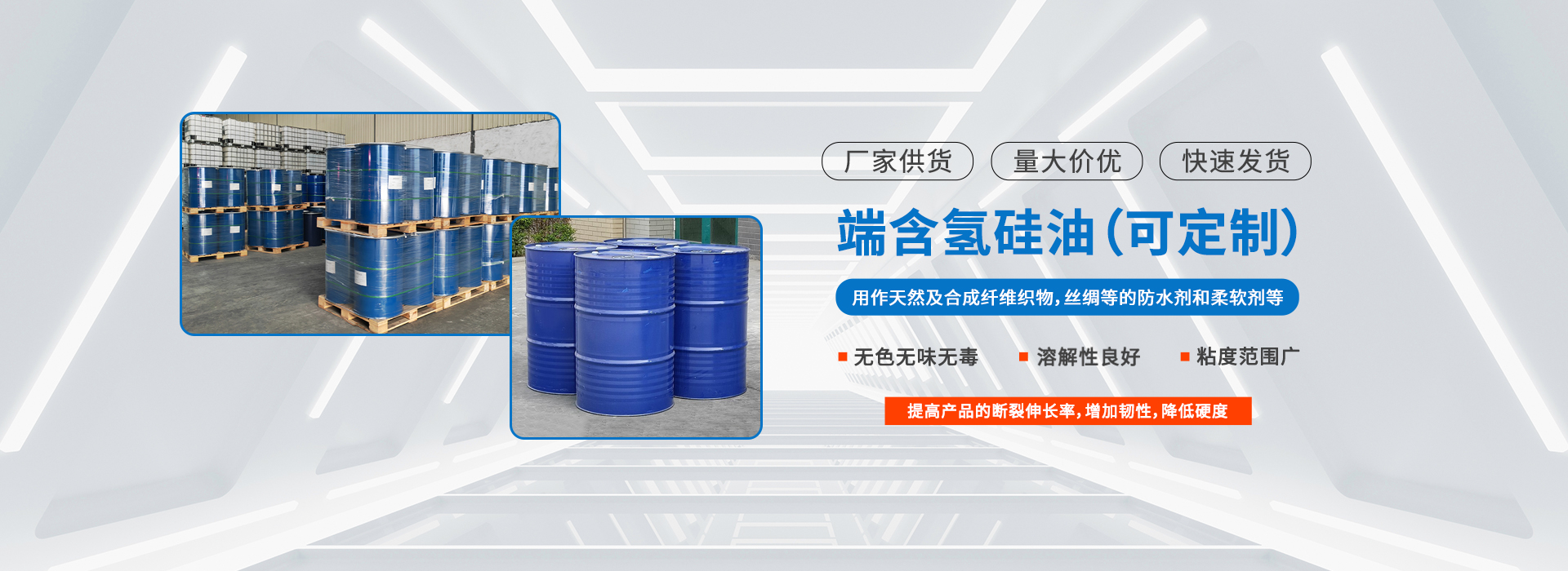 端含氫硅油包裝規(guī)格及運(yùn)輸要求端含氫硅油的包裝與運(yùn)輸需嚴(yán)格遵循規(guī)范,以確保產(chǎn)品穩(wěn)定性和安全性,具體如下:一、包裝規(guī)格?容器類(lèi)型?:采用塑料桶(如聚乙烯材質(zhì))或鐵桶(內(nèi)涂防護(hù)層)包裝,桶壁需密封以防雜質(zhì)滲入13。?容量標(biāo)準(zhǔn)?:常見(jiàn)規(guī)格包括50kg、100kg塑料桶或200kg鐵桶,部分型號(hào)提供200L容積包裝(凈重約